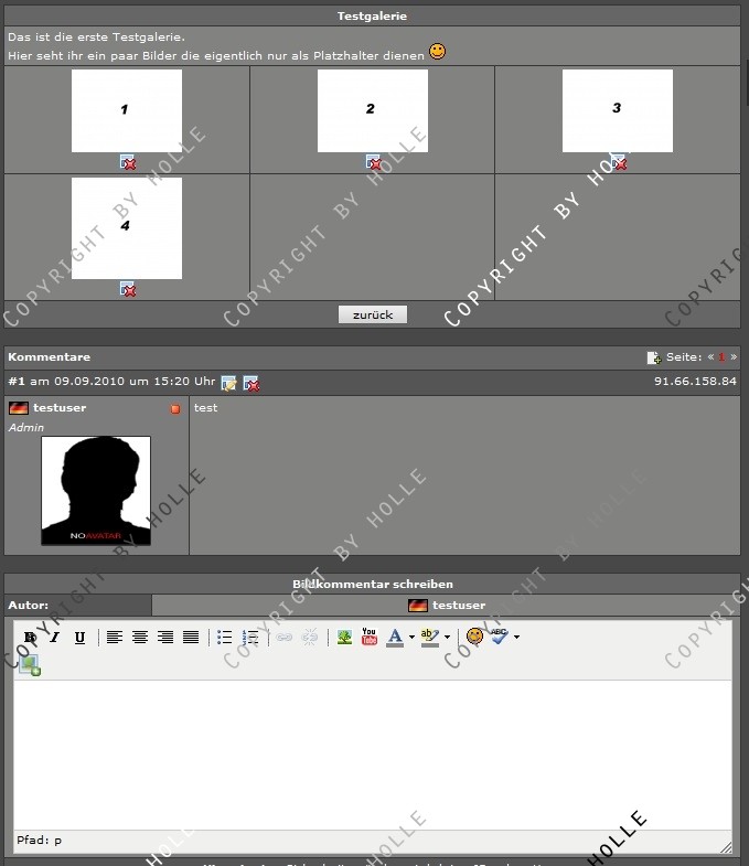 Damit man auch die Bilder eurer Galerien kommentieren kann, habe ich hier ein Addon gecodet, welches euch diese Funktion zur Verfügung stellt.