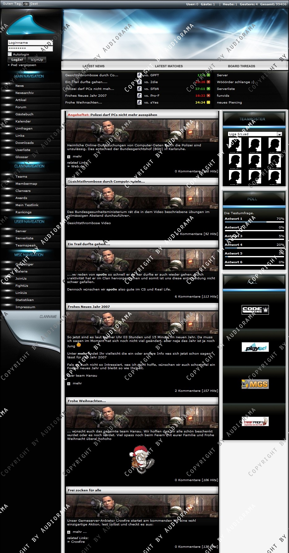 Du hast noch keinen Account auf ClanDesigns.de? Dann kannst du dich hier kostenlos registrieren!